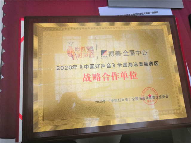 2020《中國好聲音》全國海選渠縣賽區(qū)組委會為博美﹒全屋中心授牌《戰(zhàn)略合作單位》。
