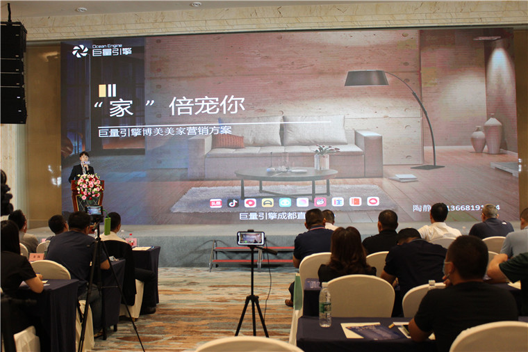嘉賓主題分享環(huán)節(jié),房天下家居四川分公司總經(jīng)理李才帶來了房地產(chǎn)數(shù)據(jù)以及房地產(chǎn)未來趨勢發(fā)展專題分享,同時抖音官方代表現(xiàn)場也發(fā)布了未來博美?美家線上引流運營方案。