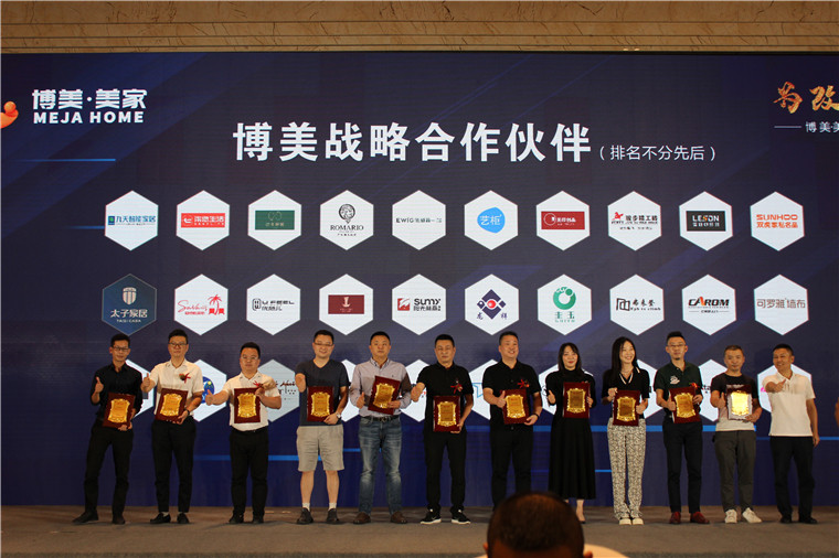 活動最后,九天智能家居、太子家居、雙虎家私、柒息生活館、杏田家具等30多家已與博美?美家合作共贏的廠家舉行了授牌儀式,感謝所有品牌商家對博美?美家的信任。