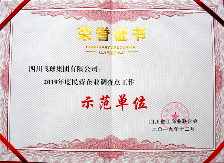 最近,省工商聯(lián)對(duì)自貢市的三家企業(yè)頒發(fā)了“2019年度民營(yíng)企業(yè)調(diào)查點(diǎn)工作示范單位”證書,飛球公司榮獲此殊榮。