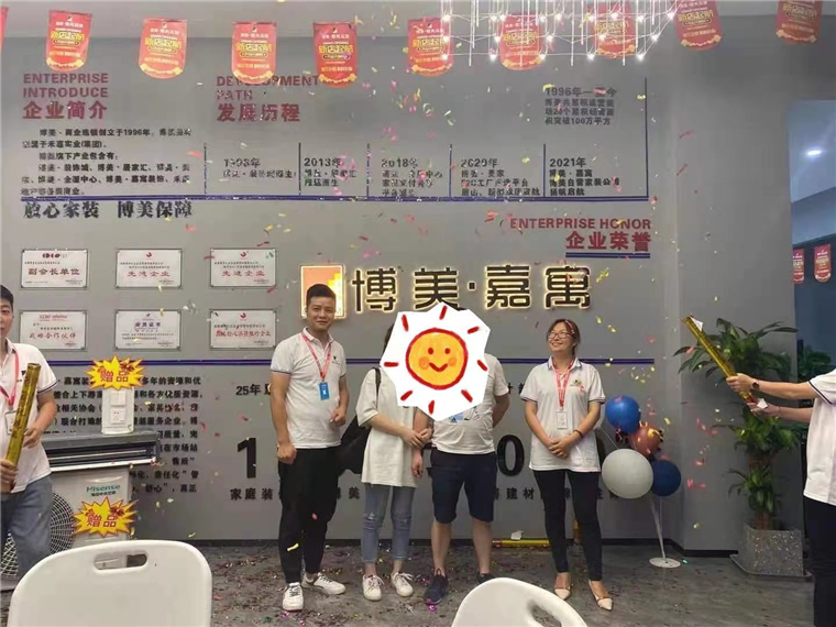 開(kāi)業(yè)現(xiàn)場(chǎng),熱鬧非凡:喜鵲登枝,嘉賓盈門(mén),禮花綻放,花籃相迎,祥瑞繞門(mén)庭,簽名墻吸引了大量嘉賓朋友們的參與,他們紛紛留下自己的名字及祝福。喜鵲登枝,嘉賓盈門(mén),祥瑞繞門(mén)庭,眾多材料商家、裝修業(yè)主齊聚一堂,共同見(jiàn)證了這一激動(dòng)人心的時(shí)刻。博美?嘉寓裝飾遂寧店的開(kāi)業(yè),不僅為當(dāng)?shù)丶已b行業(yè)增加了一個(gè)明星品牌,也為遂寧市民提供了一個(gè)裝修選擇的新天地。