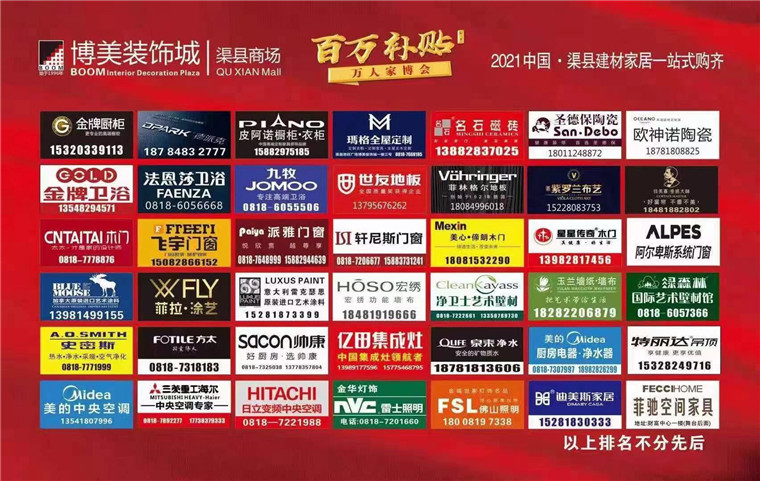 這次的活動(dòng),持續(xù)時(shí)間長(zhǎng),優(yōu)惠力度大,博美裝飾城渠縣商場(chǎng)拿出了最大的誠(chéng)意,為眾多家具建材品牌提供一個(gè)展示的平臺(tái),推廣了品牌知名度,得到了商家的支持,同時(shí)也為消費(fèi)者們甄選出物超所值的優(yōu)質(zhì)產(chǎn)品,獲得了一致好評(píng)。
