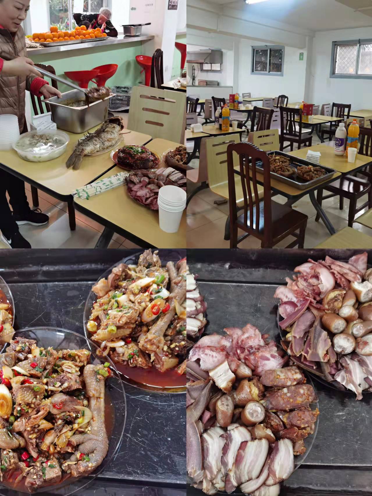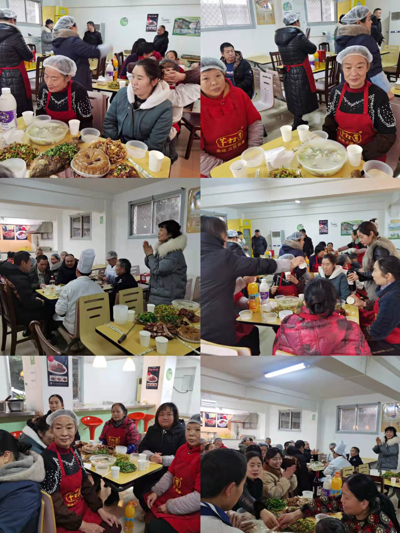 上菜咯???大廚們?yōu)樽约旱耐芦I(xiàn)上了自己最棒的廚藝,那些普通的雞魚鴨肉和青菜等,在大廚的廚藝中變成了美味佳肴,同事們個個吃的非常開心。堯登玉是芊村道工作10余年的老員工,她表示,這么多同事們一起過年,雖然沒有親人在身邊,但是我們芊村道就是一家人,就是親人,在這里同樣地能夠感受到公司大家庭新年的快樂,我覺得非常的幸福,也很感謝我們公司,每年為我們辦的這種團(tuán)年飯,不僅滿足了我們的胃,更溫暖了我們的心。愿我們在芊村道這個大家庭里,一直都不缺家的感覺和家的味道。