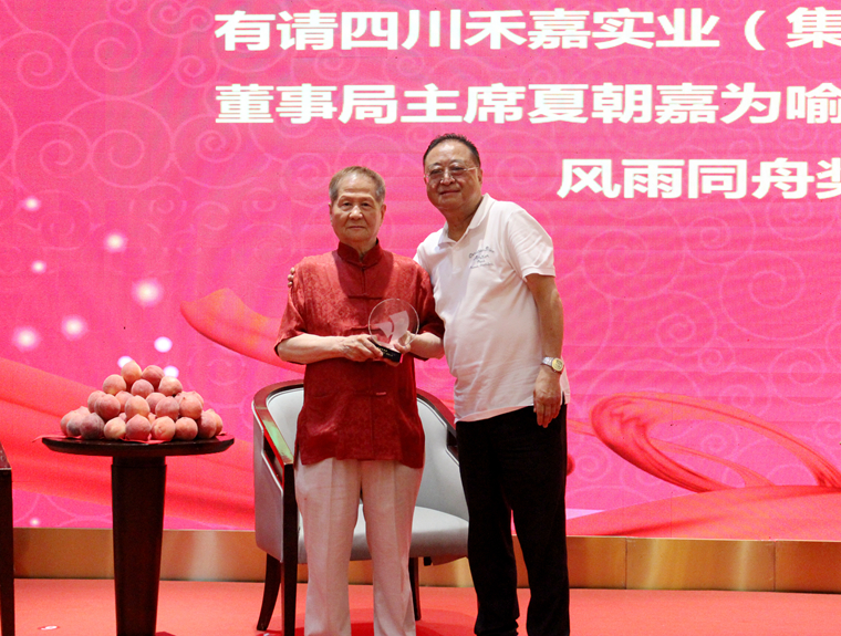 四川禾嘉實(shí)業(yè)集團(tuán)董事局主席夏朝嘉先生為喻德露先生送上生日祝詞并為他頒發(fā)了”風(fēng)雨同舟獎(jiǎng)”,同時(shí)回顧了他與喻德露先生共同創(chuàng)業(yè)中凝結(jié)成的兄長般的情誼。