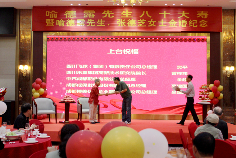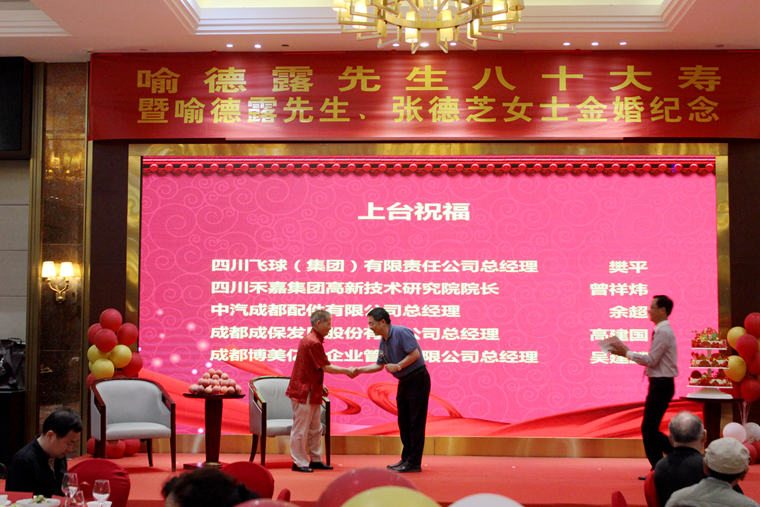 最后,四川禾嘉集團(tuán)董事會(huì)局主席夏朝嘉及夫人禾嘉集團(tuán)副董事長王麥霓女士,為喻德露夫婦送上了金婚禮物及祝福,為整個(gè)慶典劃上了圓滿的句號(hào)。如果用一句話概括喻德露先生的事業(yè)與生活,那便是厚德載物,攬勝人生。