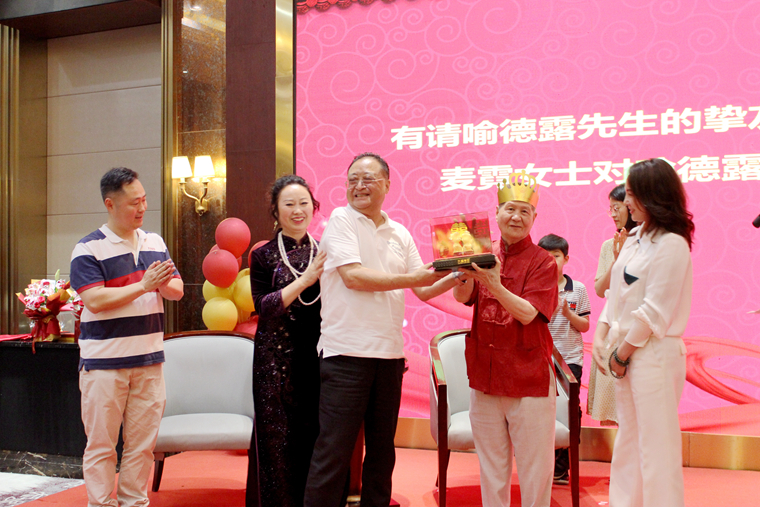 圖 | 夏主席及其夫人王麥霓女士為喻德露先生送上金婚禮物及祝福