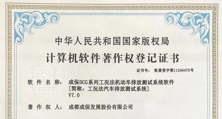 本網(wǎng)訊(邱云飛報(bào)道)近期,成都成保發(fā)展股份有限公司(以下簡稱:“成都成?!保癉CG系列工況法機(jī)動(dòng)車排放測試系統(tǒng)V7.0”正式獲得國家版權(quán)局頒發(fā)的計(jì)算機(jī)軟件著作權(quán)證書。其系列工況法在堅(jiān)持傳統(tǒng)制造工藝的基礎(chǔ)上持續(xù)研發(fā)創(chuàng)新,實(shí)現(xiàn)了系統(tǒng)軟件功能升級(jí)和服務(wù)升級(jí)。