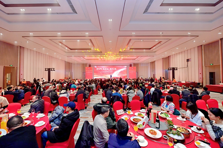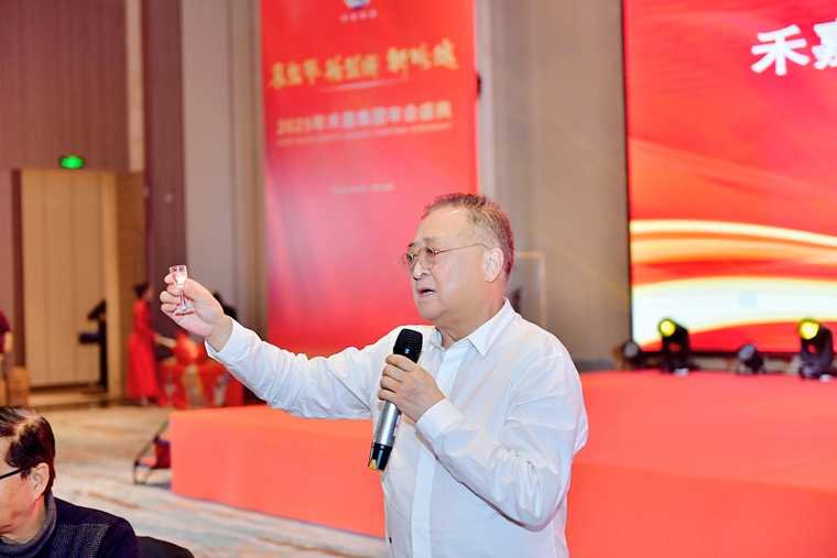 團(tuán)拜會進(jìn)入祝酒時刻——集團(tuán)董事局主席夏朝嘉先生在晚會發(fā)表了祝酒辭,他祝愿各位親朋好友新春快樂,闔家歡樂! 祝愿禾嘉集團(tuán)新年登高,大展宏圖! 頓時,全場的酒杯紛紛舉起,在滿堂的喜慶中晚會正式開始。