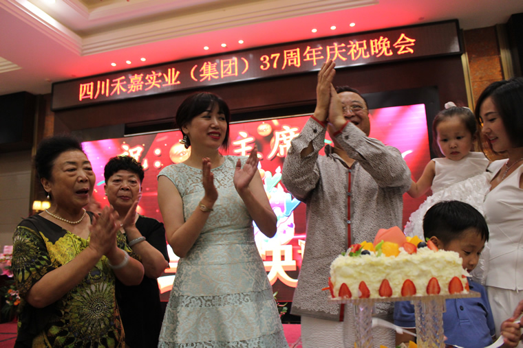 晚上七點半,晚宴開始。董事會全體成員、親屬及朋友向名譽董事長陶慕瓊女士致敬,全體親屬及朋友上臺獻花和敬禮。禾嘉集團董事局主席夏朝嘉先生發(fā)表了晚會致辭并祝酒:“現(xiàn)在,讓我們舉起杯中酒,共慶咱們的禾嘉集團37周年華誕!祝愿禾嘉集團年年登高,宏圖大展!”然后由禾嘉集團文化活動中心表演舞蹈《美人吟》。禾嘉集團37周年也恰逢夏主席生日。全體親屬及朋友上臺領(lǐng)唱生日快樂歌,祝夏主席生日快樂。