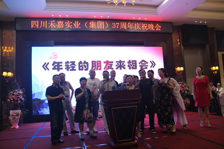 選手演唱完畢后,集團的副董事長樊平也為集團37周年獻上了歌曲。壽星夏主席在這雙喜臨門的日子里,邀請同集團一起、同他一起走過30年風(fēng)風(fēng)雨雨的伙伴,一起上臺唱歌《年輕的朋友》來相會。他們的歌聲再現(xiàn)了禾嘉集團創(chuàng)業(yè)初他們所特有的“開創(chuàng)未來、拼搏奮斗”的精神活力,年輕的心對未來的無限向往與憧憬。