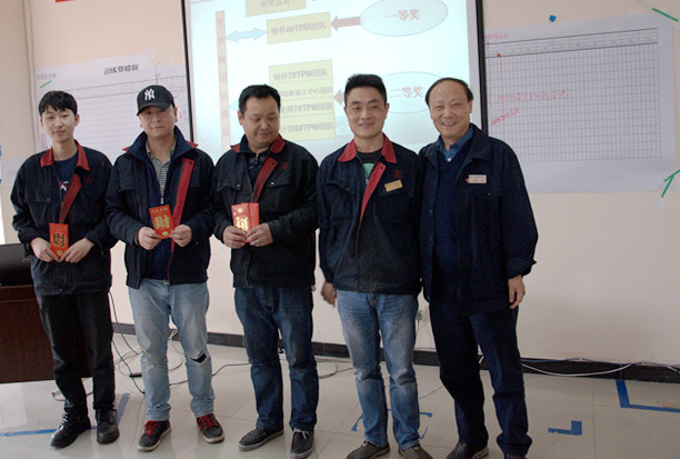 本次TPM總結表彰會最后中汽成配總經(jīng)理劉謨林和副總經(jīng)理陳榮貴對獲獎人員進行頒發(fā)獎金并合影。并鼓勵員工在接下來的TPM推行中繼續(xù)努力,使中汽成配精益生產(chǎn)更上一層樓。