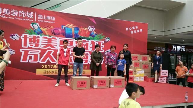 5月1日,活動(dòng)如期舉行,客戶一大早就在裝飾城門口排起了長(zhǎng)隊(duì),我們也是感受到了客戶參與本次活動(dòng)的熱情。下午兩點(diǎn),抽獎(jiǎng)現(xiàn)場(chǎng)也正式開始,現(xiàn)場(chǎng)抽出了特等獎(jiǎng)對(duì)開門冰箱一名,一等獎(jiǎng)55寸電視機(jī)一名,二等獎(jiǎng)洗衣機(jī)一名,三等獎(jiǎng)微波爐等多項(xiàng)大獎(jiǎng),現(xiàn)場(chǎng)的一位客戶李女士表示:“我家之前裝修的材料都是在博美裝飾城訂購(gòu)的,博美裝飾城品類齊全,可以充分滿足各種需求,自開業(yè)以來博美每次活動(dòng)我都會(huì)關(guān)注,與其他同類的建材市場(chǎng)比較性價(jià)比很高,今天雖然我沒有抽到大獎(jiǎng),但是我也買到了我心儀的產(chǎn)品,感謝博美裝飾城,你們一流的服務(wù),一流的環(huán)境,一流的產(chǎn)品,都是我們客戶的最佳選擇?!?/span>