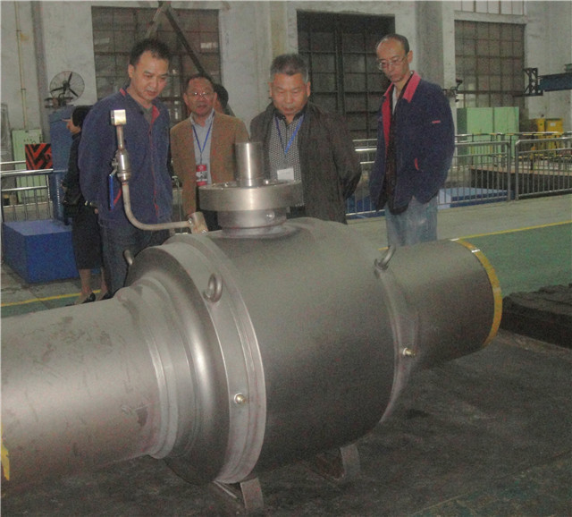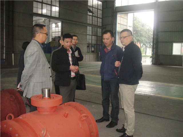 來賓深入到金加工車間現(xiàn)場(chǎng)參觀加工閥門零件的生產(chǎn)工藝流程,認(rèn)真了解設(shè)備的加工能力。在熱處理工段,姚總向來賓介紹了在中國閥門行業(yè),飛球公司堅(jiān)持質(zhì)量管理和質(zhì)保體系運(yùn)行,注重閥門品牌,對(duì)閥門零件進(jìn)行熱處理,以確保其品質(zhì)。在總裝車間來賓參觀了3200噸試壓機(jī),咨詢了公司如何防止閥門泄漏等方面的情況。鐘總和姚總、江總等領(lǐng)導(dǎo)分別對(duì)照閥門零件和成品,詳盡地回答了來賓關(guān)心的有關(guān)技術(shù)問題,以及公司在確保產(chǎn)品質(zhì)量方面采取的具體措施。在總裝車間來賓饒有興趣的觀看了小口徑閥門的裝配過程。在球閥樣機(jī)面前,姚總介紹道:2002年飛球公司率 先研制開發(fā)出了中國首臺(tái)滿足西氣東輸主管線要求的40吋、600磅級(jí),全焊式鍛鋼氣液聯(lián)動(dòng)管線球閥樣機(jī),經(jīng)國內(nèi)專家組鑒定確認(rèn),該產(chǎn)品各項(xiàng)性能指標(biāo)均達(dá)到了世界同類產(chǎn)品水平,被科技部列入了國家A類重點(diǎn)新產(chǎn)口,填補(bǔ)了國內(nèi)空白,被業(yè)內(nèi)專家評(píng)價(jià)為“中國閥門制造史上的里程碑”。公司曾被國家“西氣東輸”領(lǐng)導(dǎo)小組授予“西氣東輸突出貢獻(xiàn)獎(jiǎng)”稱號(hào),這是中國閥門行業(yè)獲得的唯 一獎(jiǎng)項(xiàng)。