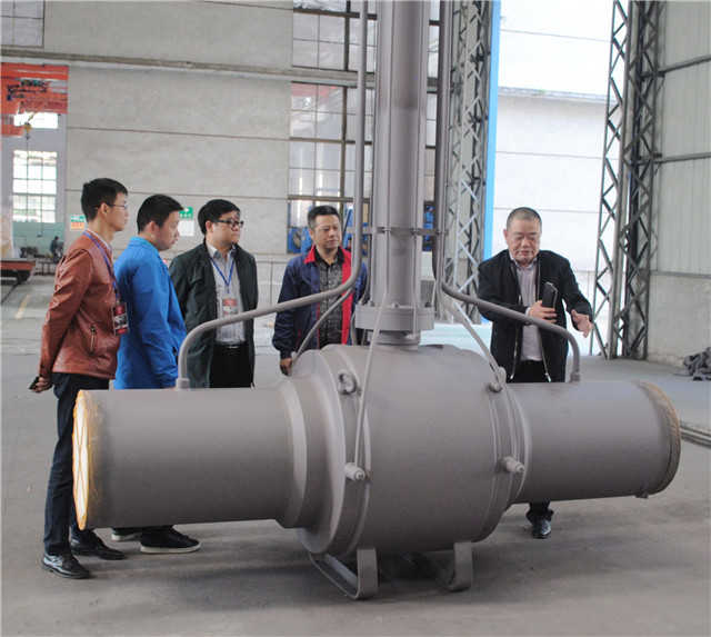 在江總的陪同下,來(lái)賓首先參觀了中國(guó)球閥的發(fā)源地,矗立在公司花園中的中國(guó)首臺(tái)鑄鋼氣液聯(lián)動(dòng)緊急截?cái)啻罂趶角蜷y,并合影留念。