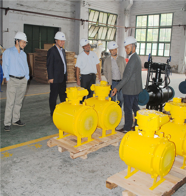 在曹總,副總經(jīng)理姚兵、魯健的陪同下,客商首先參觀了中國球閥的發(fā)源地,矗立在公司花園中的中國首臺氣液聯(lián)動PN80-DN1000鑄鋼大口徑球閥。