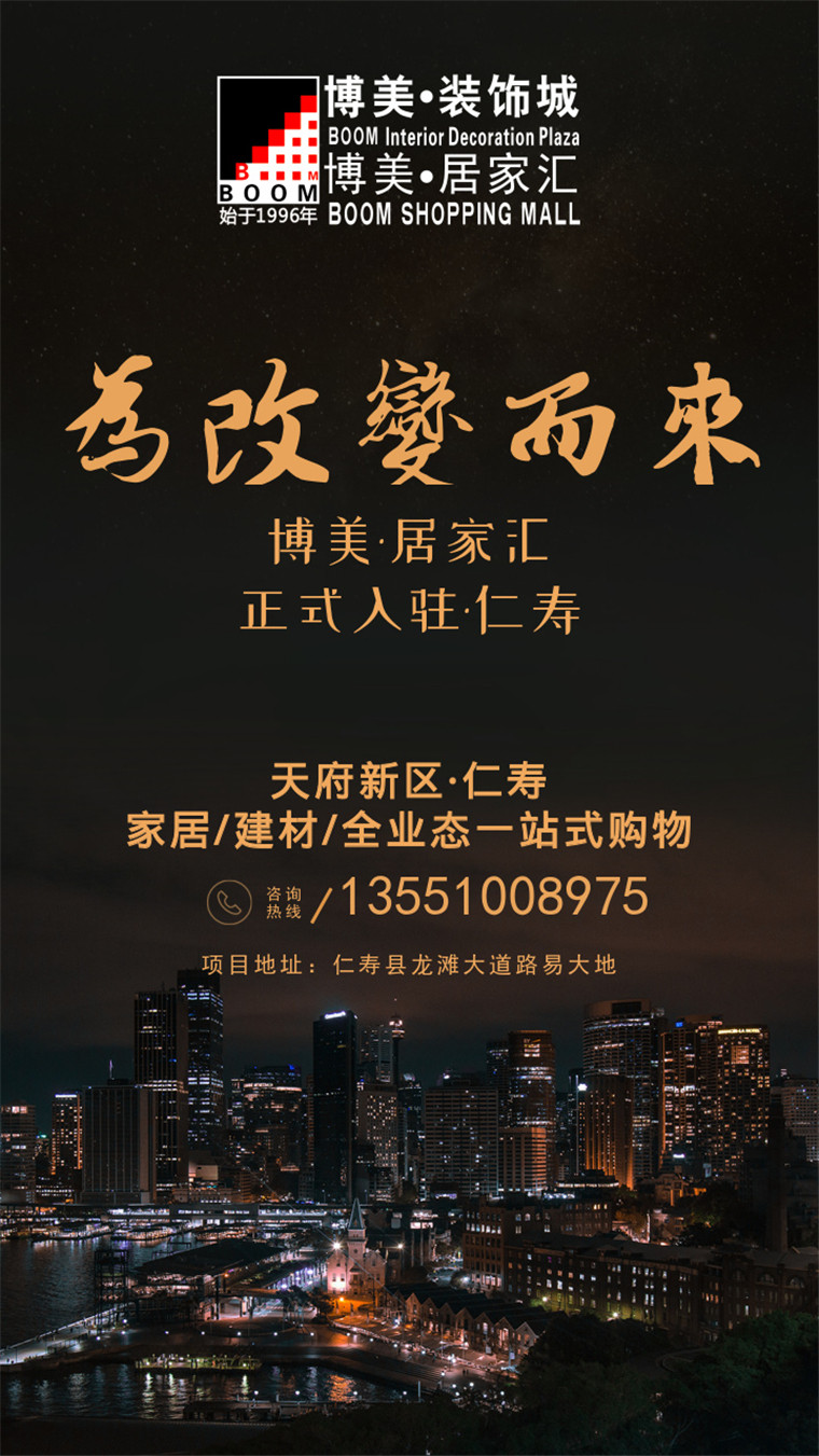 始創(chuàng)于1996年的博美裝飾城,經(jīng)過近23年的高速發(fā)展,已發(fā)展成為以居家商業(yè)地產(chǎn)投資與開發(fā)、招商與銷售、策劃與運營、直營與連鎖為主的大型居家商業(yè)平臺。博美是四川乃至西南地區(qū)具有較高知名度和美譽度的家居消費品牌,也是全國建材行業(yè)的先行者。未來,博美將扎根四川,輻射全國,繼續(xù)把賣場和平臺建到需要的地方去,倡導(dǎo)智能環(huán)保的生活方式。