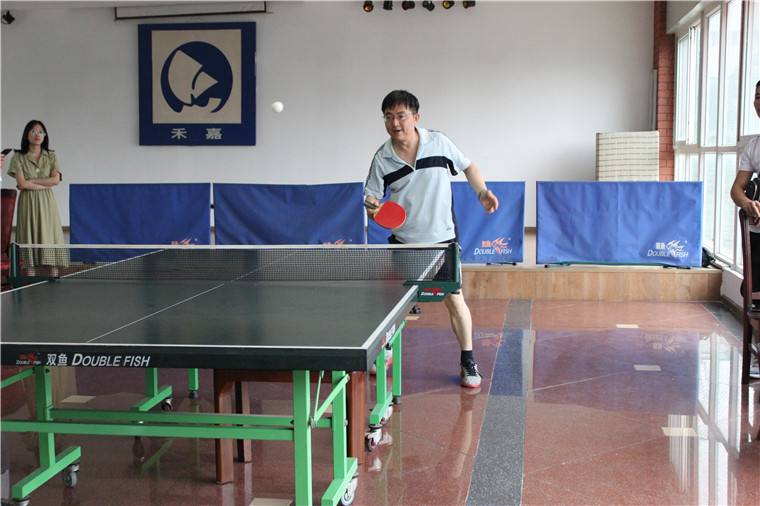 比賽分設(shè)男子、女子單打項(xiàng)目。隨著一聲哨響,比賽正式開始,大家迅速進(jìn)入狀態(tài),各路強(qiáng)手在比賽中不斷地涌現(xiàn)出來。爭(zhēng)奪十分激烈,球桌上不斷出現(xiàn)激烈對(duì)決,直拍、橫拍、扣球、旋轉(zhuǎn)球、弧線球等扣殺、絕妙回?fù)蹙实爻尸F(xiàn)在賽場(chǎng)上,伴隨拉拉隊(duì)們的熱烈歡呼與吶喊,現(xiàn)場(chǎng)氣氛一再升溫。冠亞軍決賽更是扣人心弦、高潮迭起,吶喊聲和歡呼聲此起彼伏,興奮的“好球”聲不斷。經(jīng)過多輪激戰(zhàn),參賽選員們揮汗如雨,積極拼搏,不到最后一刻決不放棄的精神深深地打動(dòng)了在場(chǎng)的每一個(gè)人。最終女子組由飛球的郭瑩,男子組由成配的夏青陽(yáng)奪得冠軍,比賽時(shí)間雖短,但大家感受到了參與的快樂、享受著付出的愉悅、品味著成功的喜悅。