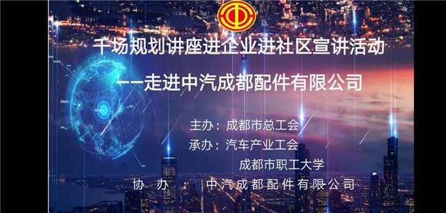 ?本網(wǎng)訊(李小清報(bào)道)按照市委市政府《關(guān)于慶祝中華人民共和國(guó)成立70周年活動(dòng)的通知》(成委〔2019〕256號(hào))要求,為了進(jìn)一步提升廣大職工群眾對(duì)城市規(guī)劃的認(rèn)知度,激發(fā)全市職工奮斗新時(shí)代、逐夢(mèng)新征程的昂揚(yáng)斗志,2019年11月29日,由成都市總工會(huì)主辦,汽車(chē)產(chǎn)業(yè)工會(huì)、成都市職工大學(xué)承辦,中汽成都配件有限公司(以下簡(jiǎn)稱(chēng)中汽成配)協(xié)辦的“千場(chǎng)規(guī)劃講座進(jìn)企業(yè)進(jìn)社區(qū)”宣講活動(dòng)在我公司二樓會(huì)議室舉辦。各部門(mén)工會(huì)成員及職工代表共三十多人共同聆聽(tīng)了此次講座。該講座由公司副總經(jīng)理、工會(huì)主席鄒祖力主持。