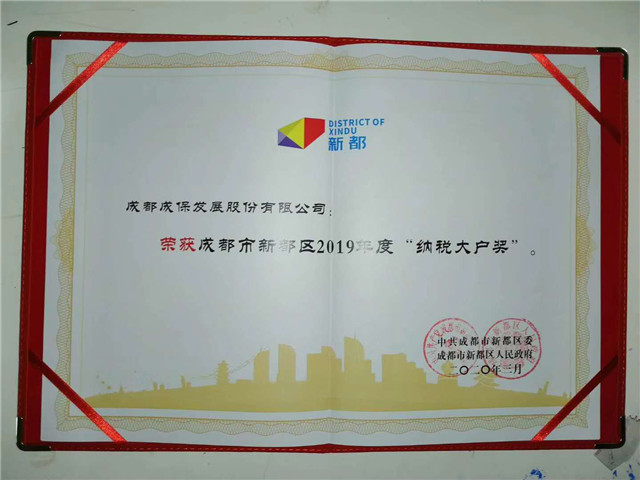 2020年3月20日,中共成都市新都區(qū)委、成都市新都區(qū)人民政府聯(lián)合召開新都區(qū)營商環(huán)境暨復(fù)產(chǎn)滿產(chǎn)穩(wěn)增長工作會。公司營銷經(jīng)理(兼工會主席)張揚代表成保公司參加了本次會議。此次會議表彰中,成保公司榮獲成都市新都區(qū)2019年“納稅大戶獎”,區(qū)委、區(qū)政府對成保公司推進地區(qū)工業(yè)經(jīng)濟發(fā)展所作出的貢獻給予了充分的肯定。